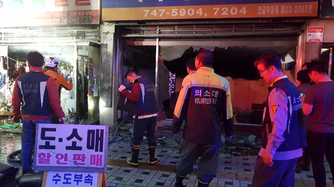 원주남성의용소방대 일산동 화재현장 출동