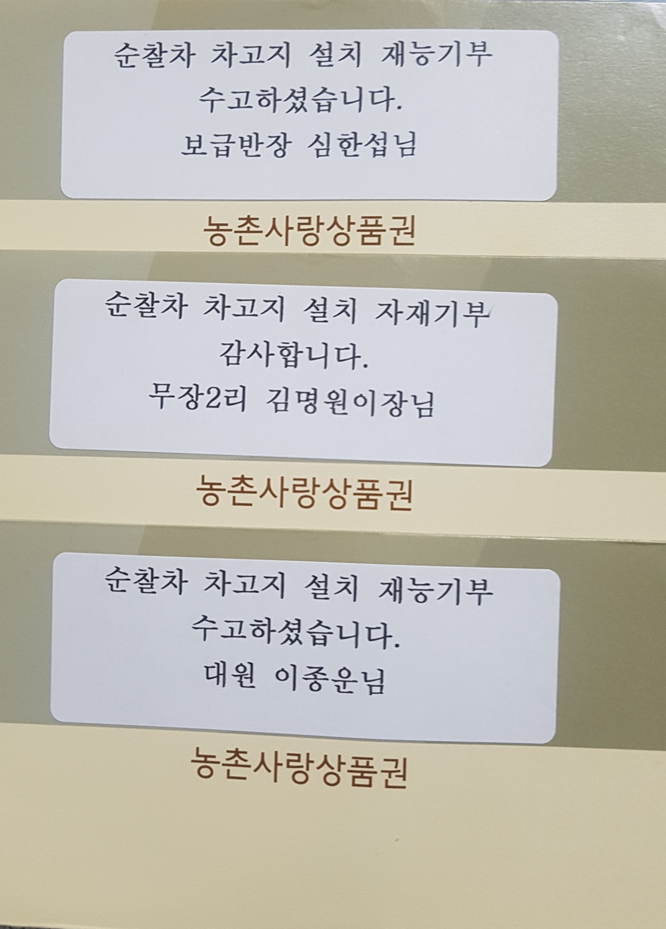 순찰차 차고지 설치 자재 및 재능 기부자 포상