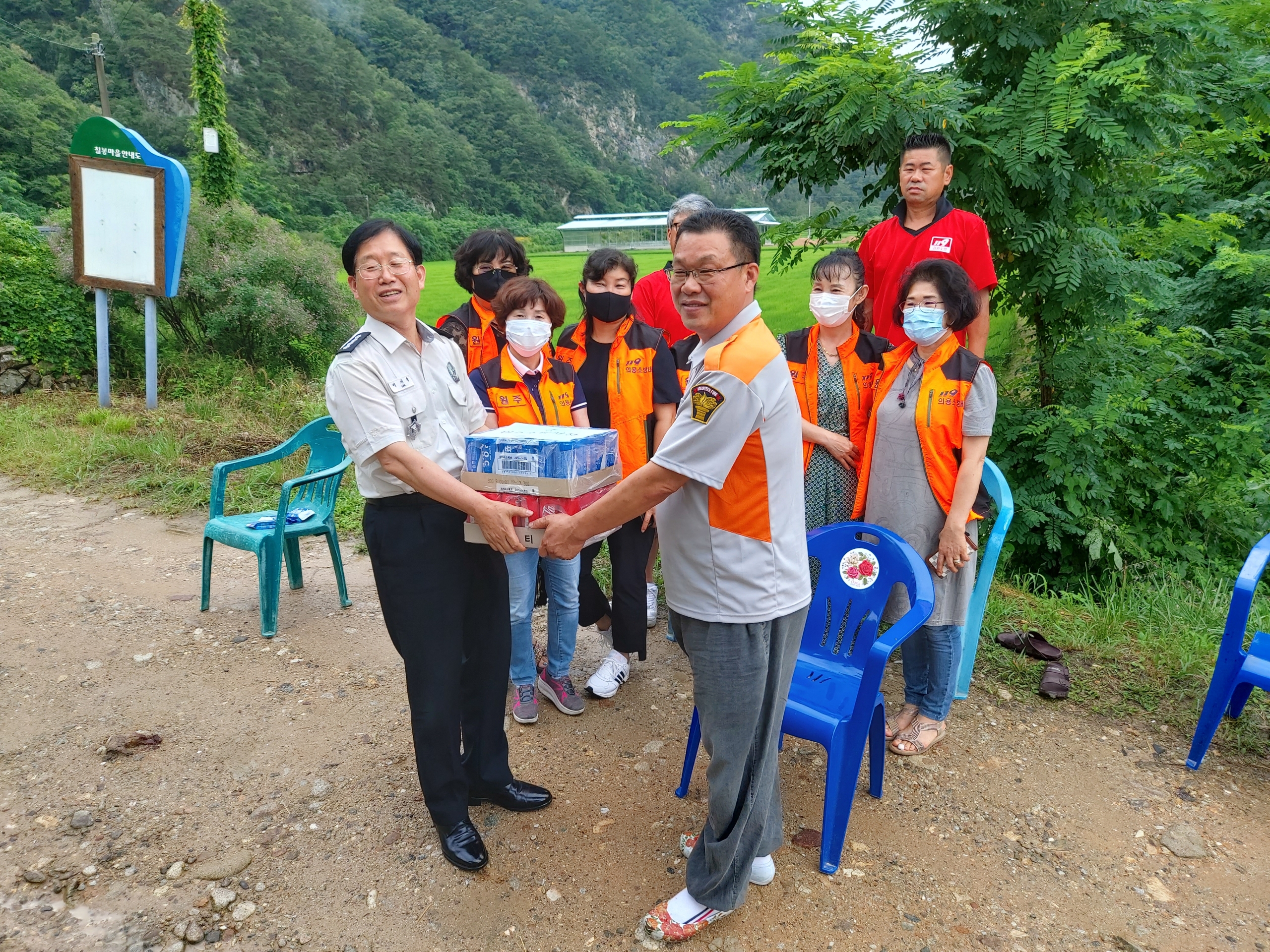 1시간 이후에 이기중서장님도 방문 하시면서 빈손으로 안오시고 음료수 2BOX 고생하신다고 사오셨습니다