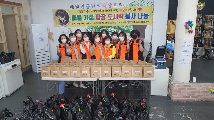 원주여성의용소방대 4월28일 원주미로시장 노인문화싸롱 도시락봉사