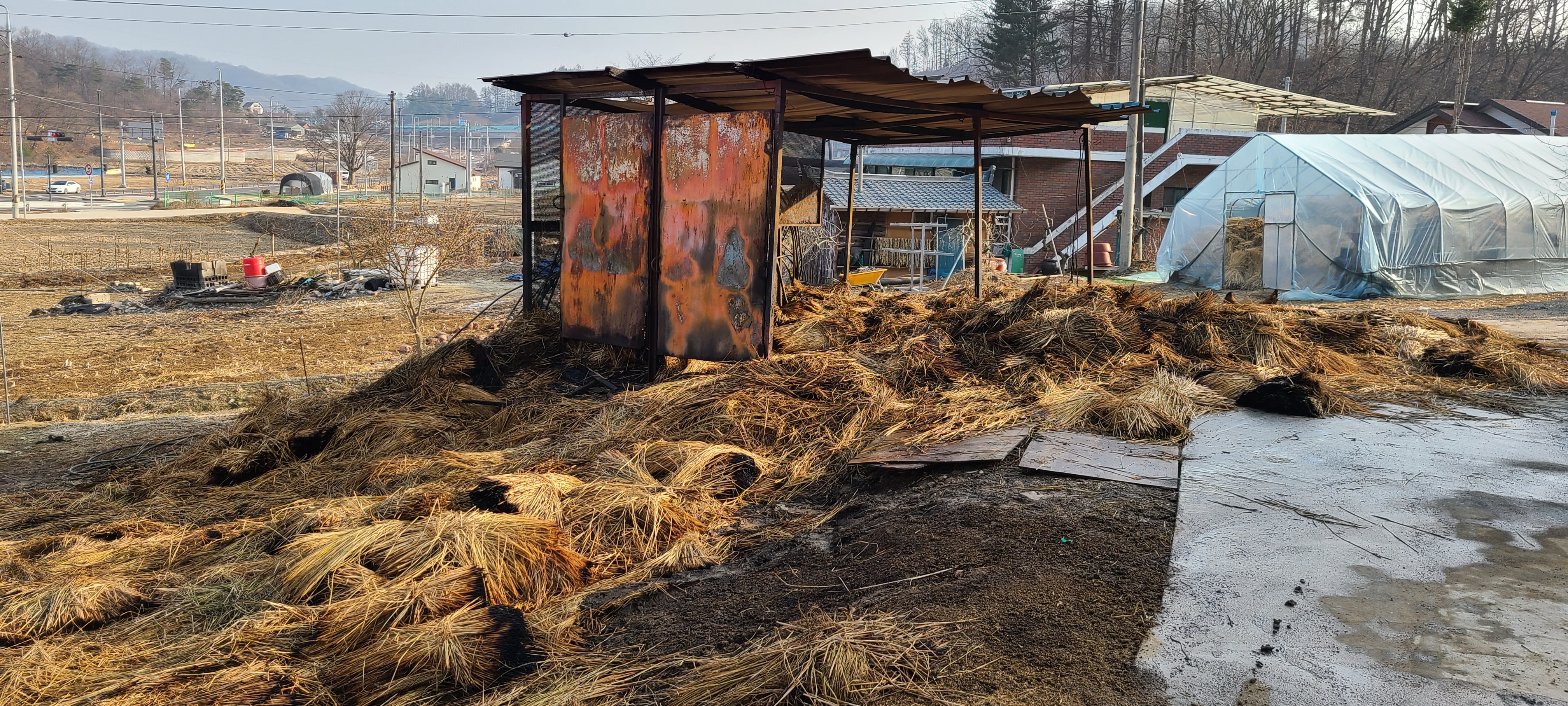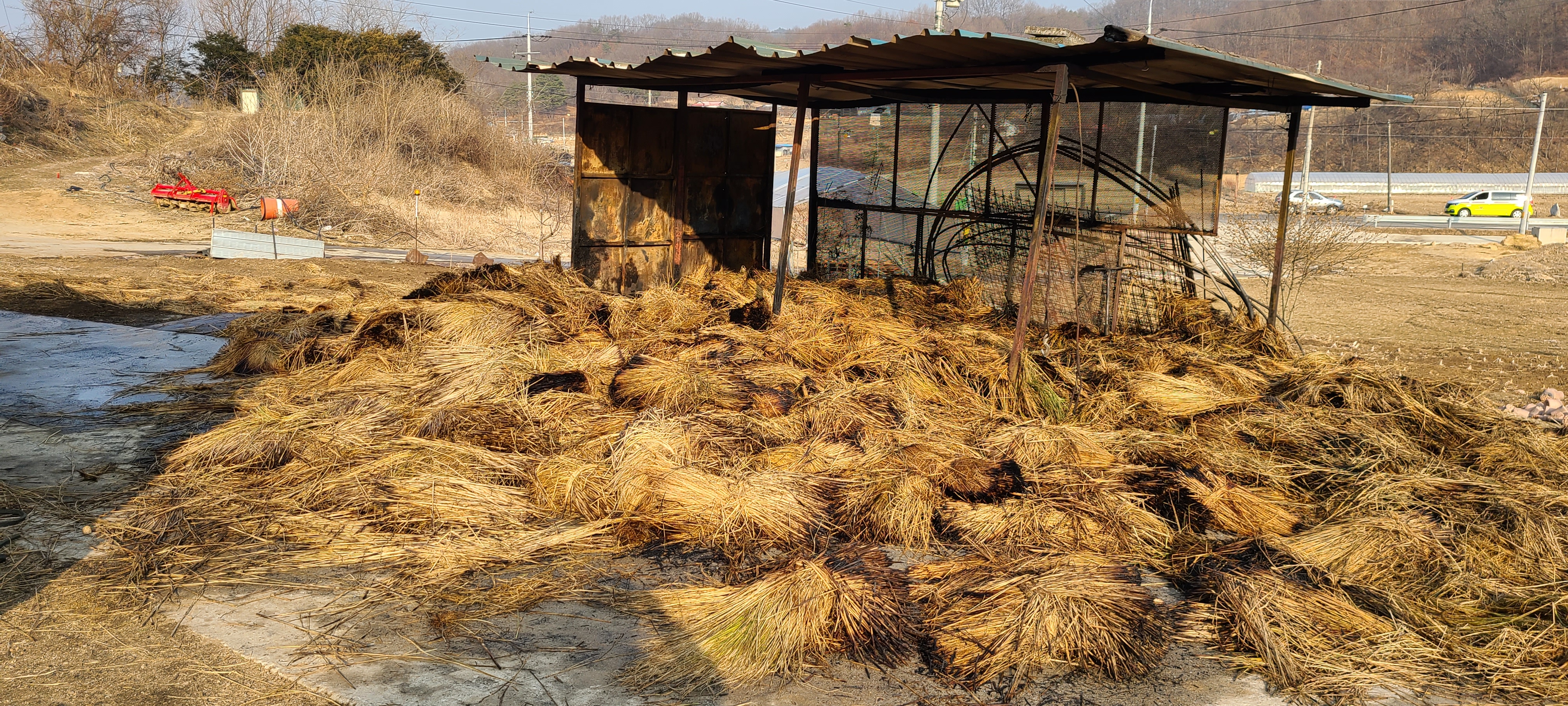 2021년2월22일 호저면 무장리 신평석화로 157-10 볏짚 창고 옆에서 용접 작업중 화재 발생