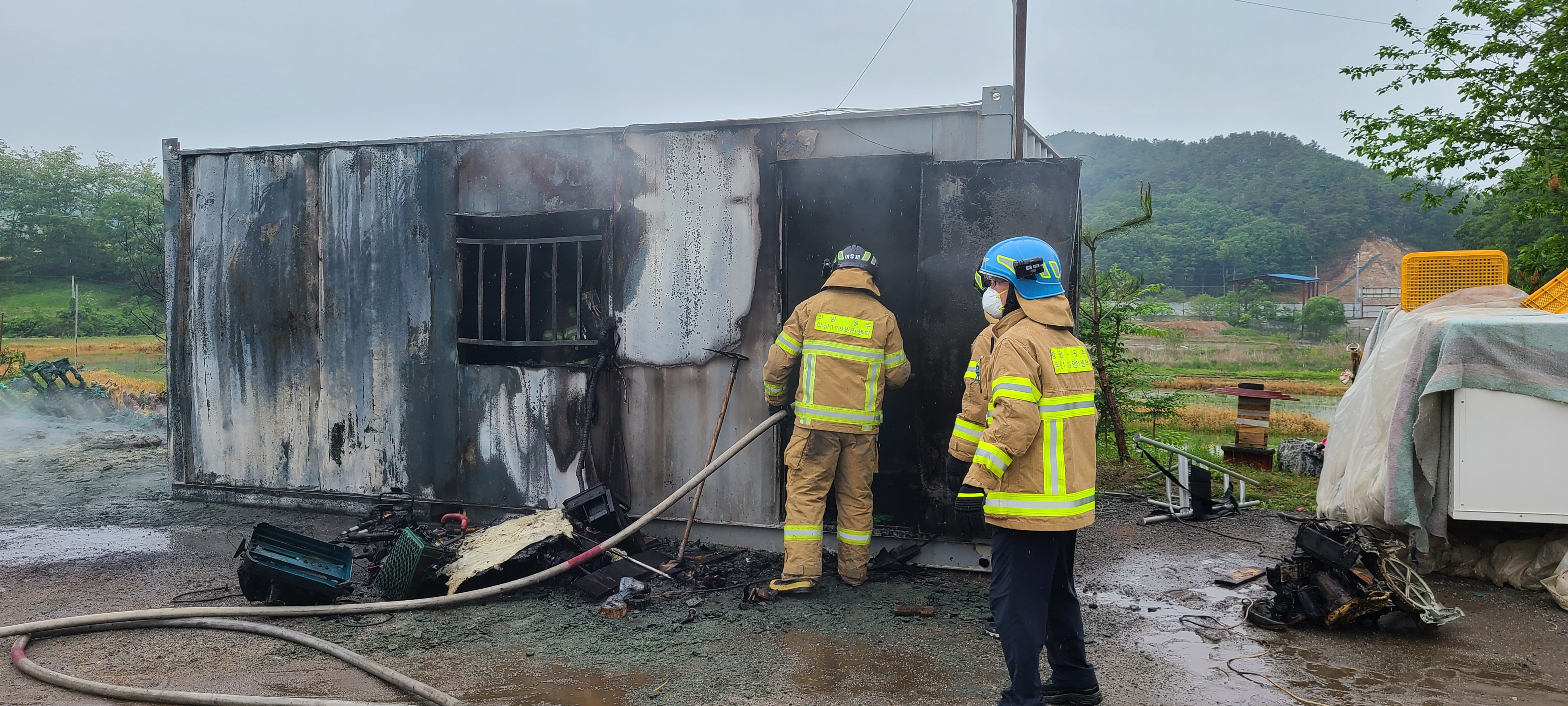 2021년5월15일 오전10시30분경 호저면 주산리 호매곡1길101-14 컨테이너 창고 화재 발생