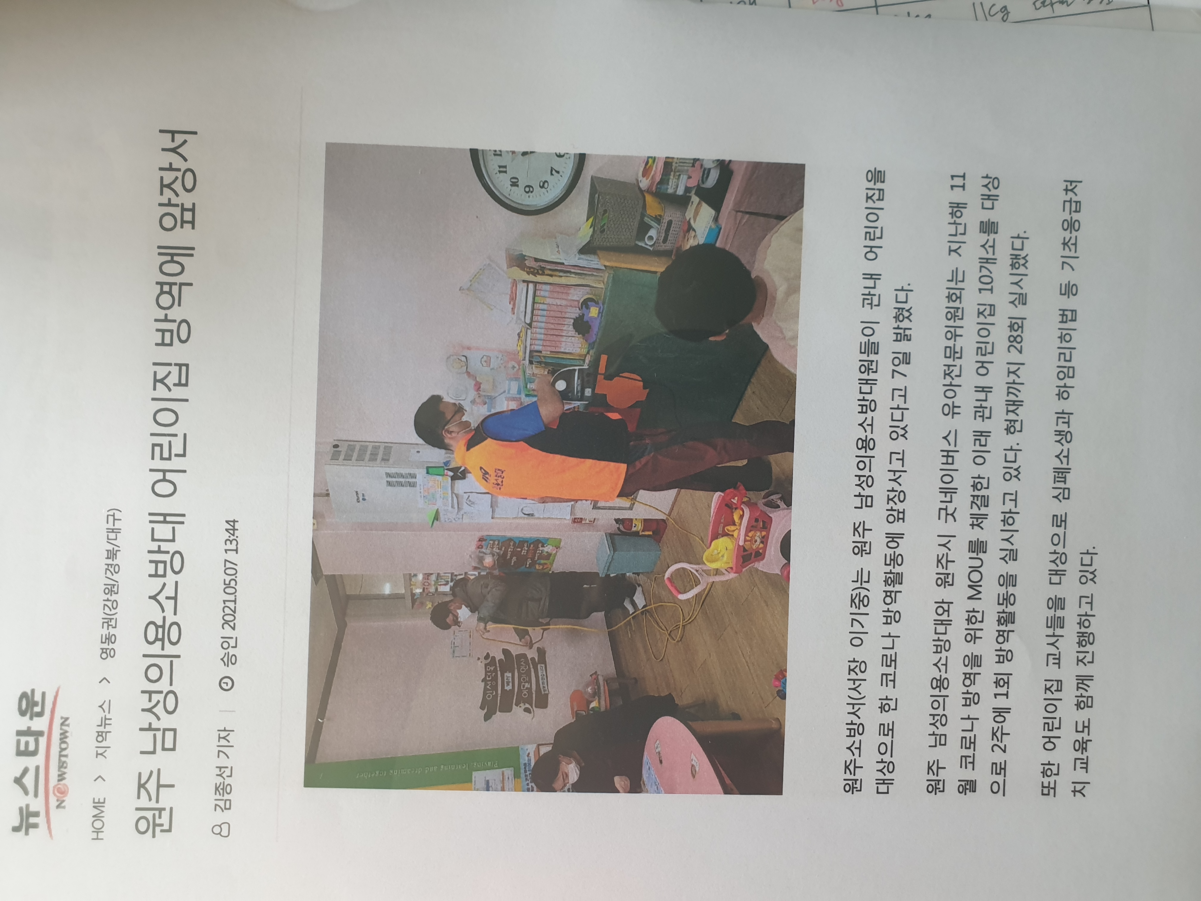 원주남성의용소방대 언론 홍보자료