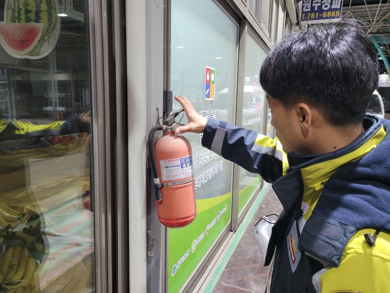 소화기 압력 게이지 및 소화걸이 불량 확인