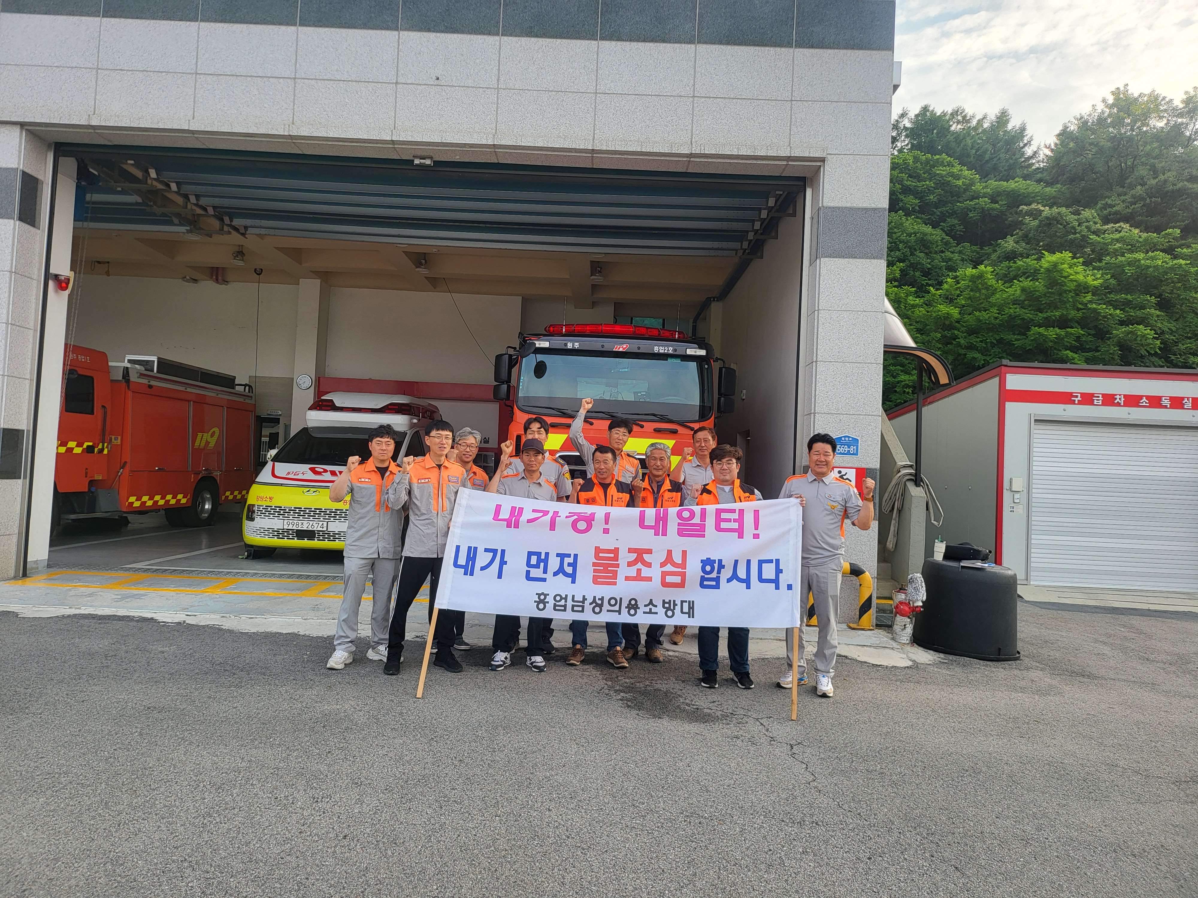 흥업남성의용소방대 7월 정기교육 및 홍보 캠페인 실시