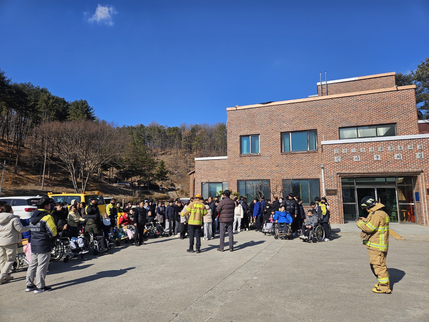 원주소방서 주관으로 산림인접 피난약자 대피유도 훈련에 참여하여 화재시 피난약자들을 도와 신속하게 대피할수 있도록 안내하였습니다.