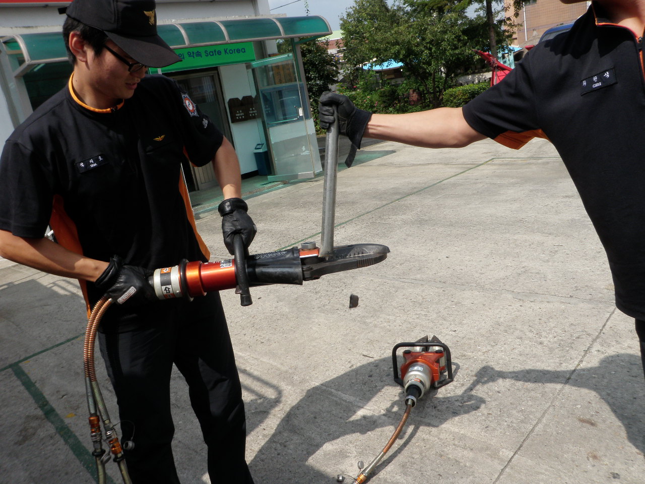교통사고 등 각종 재난사고 발생 시 압착· 매몰된 부위에 틈새를 벌리거나 잡아당기는 등 인명구조를 하는 기구인 유압식 스프레다 및 절단장비 조작훈련을 실시하였습니다.