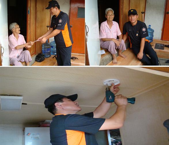 원주소방서(서장 박창진) 학성 119안전센터에서는 추석 명절을 맞이하여 관내 생활이 어려운 독거노인을 방문하여 평소 직원들이 모금한 작은 성금을 전달하였으며, 또한 주택화재 예방을 위하여 단독경보형 연기감지기도 설치해 드렸습니다. 우리 모두 작은 정성이라도 나누어 따듯하고 훈훈한 명절을 함께합시다.