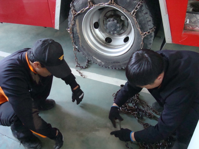 많은 눈이 왔을시 출동차량에 체인장착은 필수이기에...