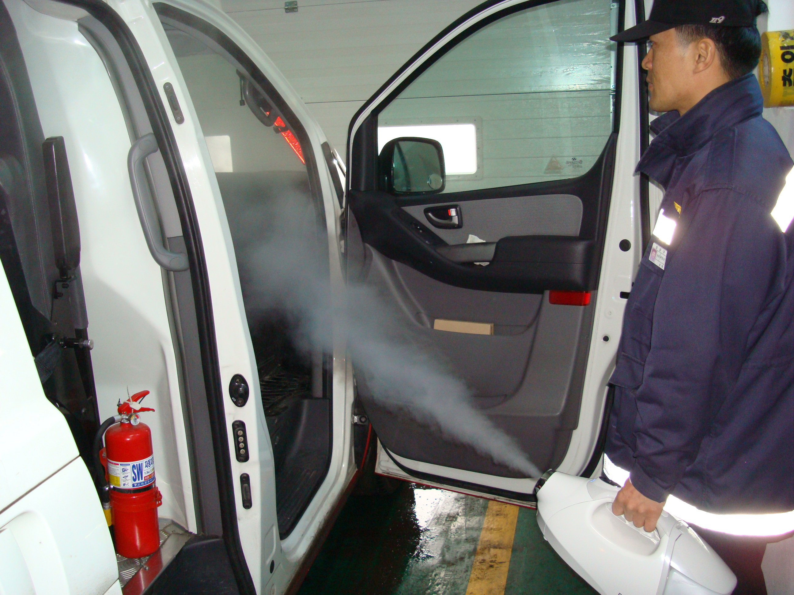 처음 플루건을 사용해보는 신규직원에게 플루건작동법 교육을 겸하며 소독을하였습니다.