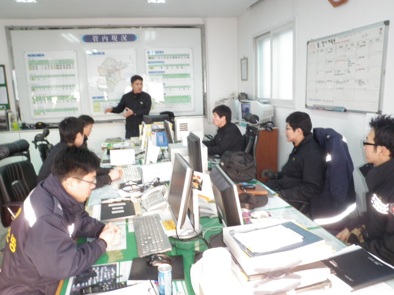 문막119안전센터(센터장 전인덕)에서는 금일 교대근무자 전원이 모여 아침조회를 가졌습니다. 근무교대자 전원이 참석하여 센터장님의 주의 사항을 경청하였는데 현장에서의 안전사고 예방, 장비조작 및 차량 정비 철저 등을 특히 강조하셨습니다. 항상 준비된 문막센터가 되겠습니다.