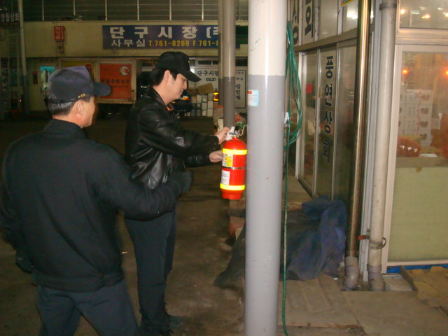 원주소방서(서장 박창진) 단구119안전센터는 전일 야간에 단구시장 철시점검을 실시하였습니다. 추운 날씨에 경제의 침체, 구제역 등 삼중고를 겪고 있는 시장상인들과 시민들에게 큰 버팀목이 될 수 있는 119안전센터가 되겠습니다.