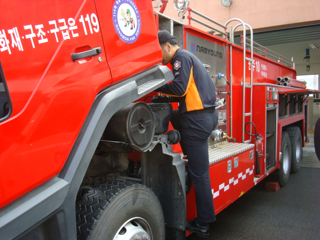 원주소방서(서장 박창진) 우산119안전센터는 센터 차고앞에서 주간점검을 실시하였습니다. 주간점검을 하기에 날씨가 너무좋아 즐거운 마음으로 차량상태를 파악하고, 출동시에 단 한건의 실수가 없도록 노력하겠습니다.