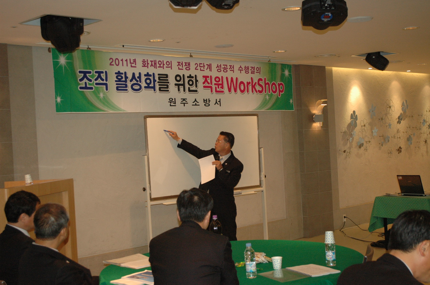 원주소방서(서장 박창진)는 4. 21 ~ 4. 22(2일간) 직원 30명이 참가한 가운데 지정면 월송리 소재 한솔오크밸리에서 『2011년도 화재와의 전쟁 완벽 추진을 위한 직원 워크숍』을 가졌다.