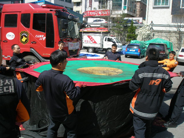 원주소방서(서장 박창진) 명륜119안전센터 에서는 구조장비조작을 시연해보았습니다. 유사시 에어매트는 시간과 인력이 많이 소모되므로 간단한 구조장비를 이용하여 긴급상황에 대처할 수 있도록 맞춰보았습니다.