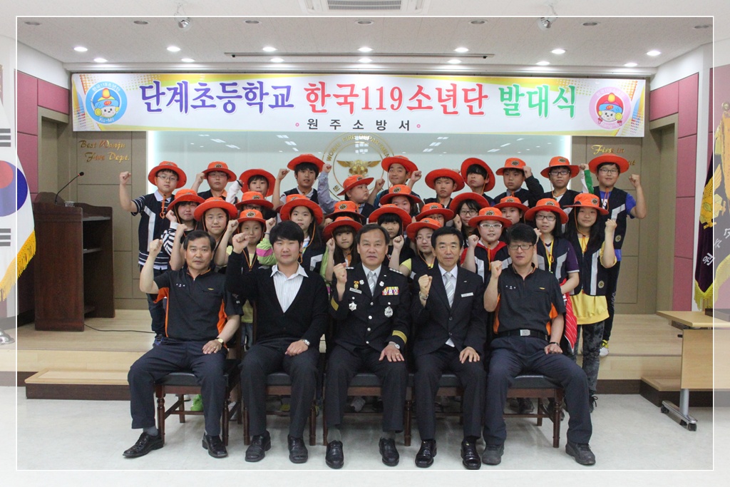 원주소방서(서장 박창진)는 25일 119소년단 시범학교인 단계초등학교 119소년단에 대해 119소년단 발대식 행사를 개최했다.