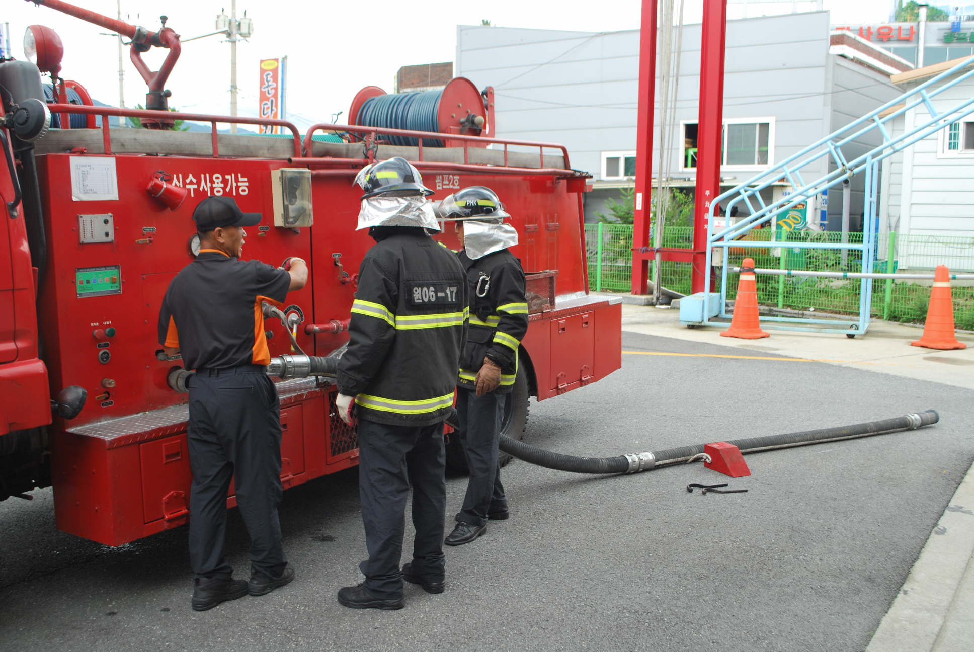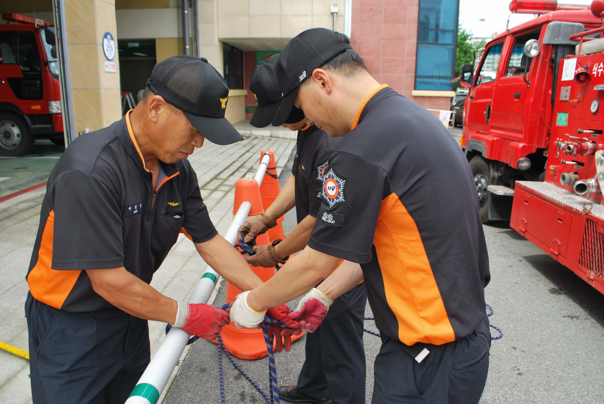 원주소방서(서장 박창진) 현장지휘대에서는 6.30(목) 단구119안전센터를 대상으로 일일소방훈련 이행여부 확인점검을 했습니다. 장마전선이 잠시 주춤하여 습하고 더운날씨였지만 계획된 일일 소방훈련을 잘 이행하고 있었습니다. 금일 단구센터의 훈련내용은 펌프차 흡수조작법과 로프매듭법이었습니다.
