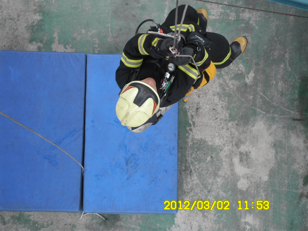 고층건물에서 화재진압시 긴급상황에 대비하여 사용되는 장비로 정확한 사용법 숙지로 소중한 목숨을 건질수 있게 훈련중입니다.