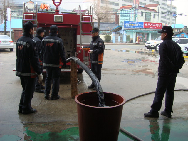 문막119안전센터(센터장 김득수)에서는 금일 펌프차량 흡수관 조작 훈련을 실시하였습니다. 현장에서 진공펌프가 고장 발생하였을 때를 대비한 수동조작법 및 진공펌프를 이용한 흡수 훈련을 하였습니다. 물이 떨어졌을 때 소화전이 없고 자연수리만 있는 곳에서 당황하지 않고 사용하려면 평소 교육훈련으로 반복 숙달을 해야 할 것입니다!!
