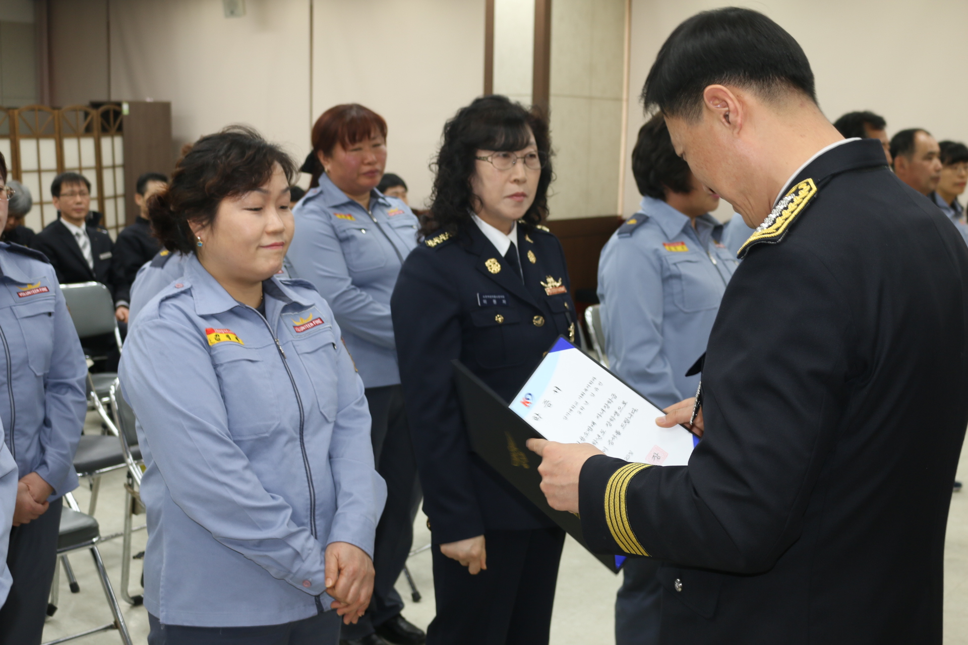 이번 장학금이 지급되는 의용소방대원 자녀장학생 35명(대학생 26명, 고등학생 9명)에게 장학증서를 수여했다.
