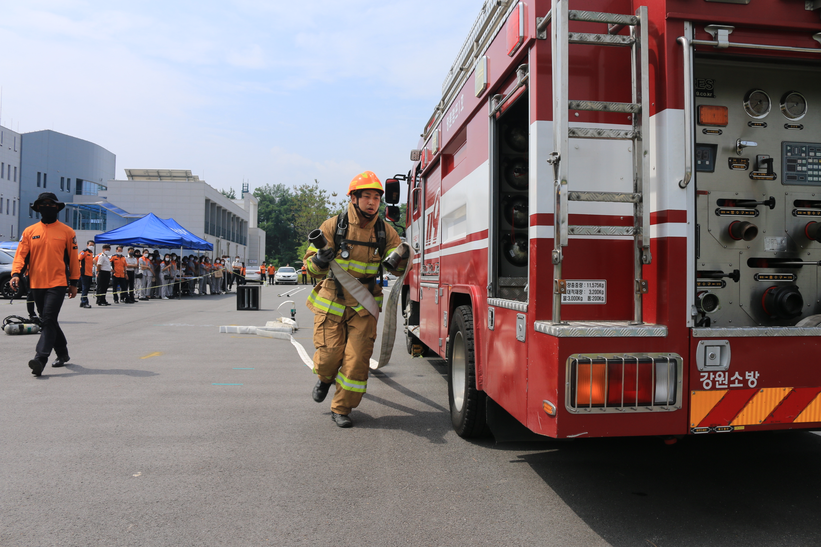 최강소방관 분야는 30M 소방호스 끌기, 중량물(50Kg) 옮기기, 70Kg 더미 옮기기,