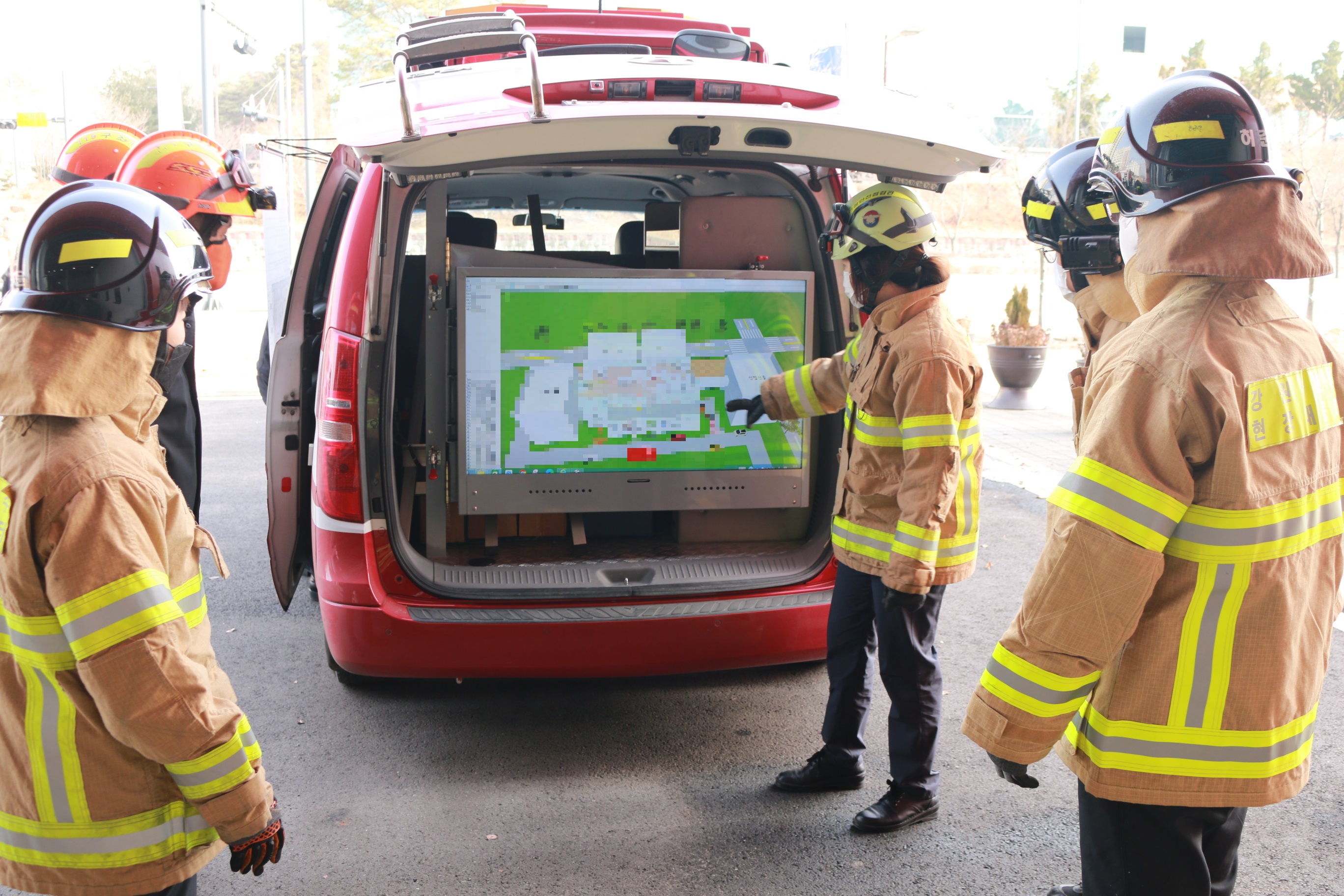 ⌜GUIDE-MAP⌟에는 공장 내의 상주인원에 관한 사항과 세부구조, 위험물의 위치·보유량, 잠재적 위험요인 등 화재 진압에 필요한 현황이 상세히 기록되어 있으며, 공장내 관계자가 상주하는 장소와 소방차량에 비치하여 화재 발생시 신속하고 효율적인 화재대응이 가능할 것으로 기대하고 있습니다. ⌜GUIDE MAP⌟은 평상시에도 소방서에서 훈련자료로 사용되는데 건물의 구조를 익히고 중요사항 숙지를 위한 도상훈련 자료로 활용되며, 화재 발생 시에는 소방출동대가 현장 투입전 공장에 대한 정보를 숙지할 수 있어 원활한 상황전파와 유기적인 작전을 실현시킬 수 있는 진압작전도로 활용됩니다.