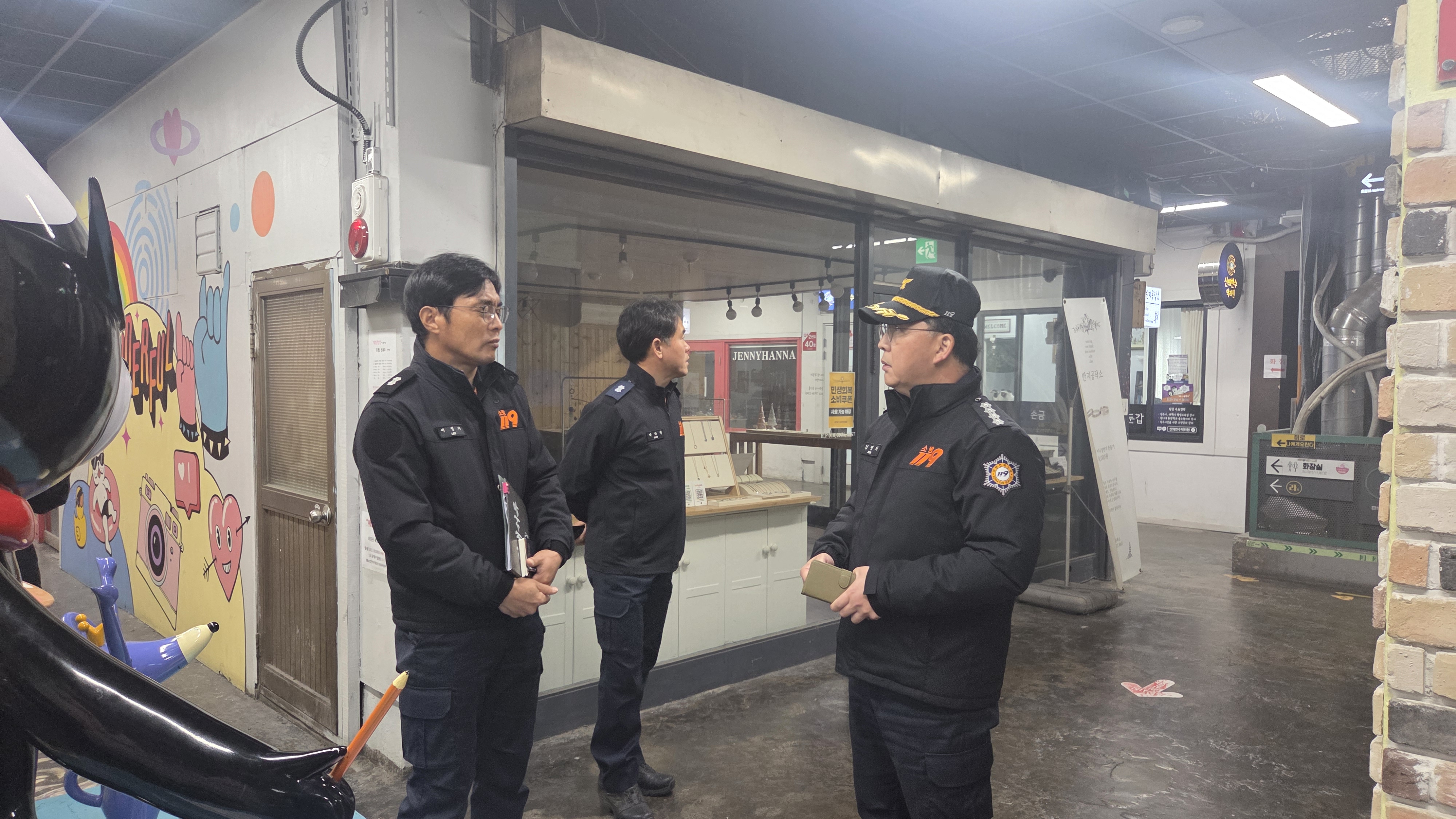 ○ 전통시장은 토후 전기설비, 밀집상가 구조, 야간 인명대피 취약성 등 복합적인 위험 요인이 상존하고 있어, 이번 현장 방문을 통해 자체 소방시설을 활용한 초기 화재 진압 전술도 검토 하는 시간을 가졌다.