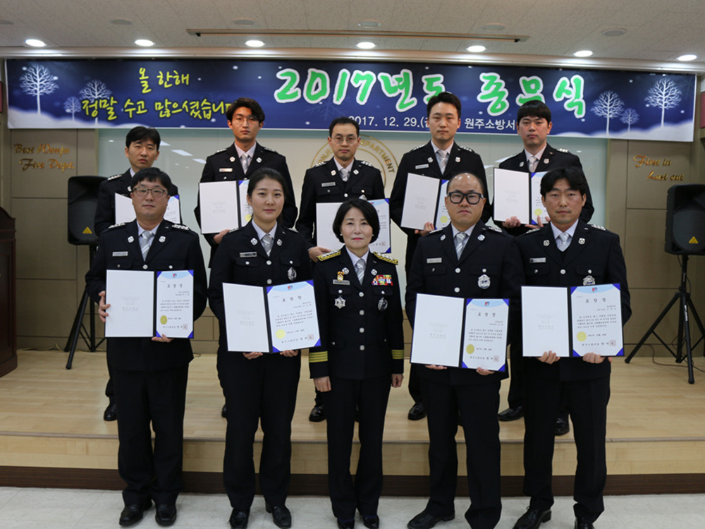 원주소방서(서장 원미숙)는 29일 오전 11시 소방서 대회의실에서 2017년 종무식을 열었다.