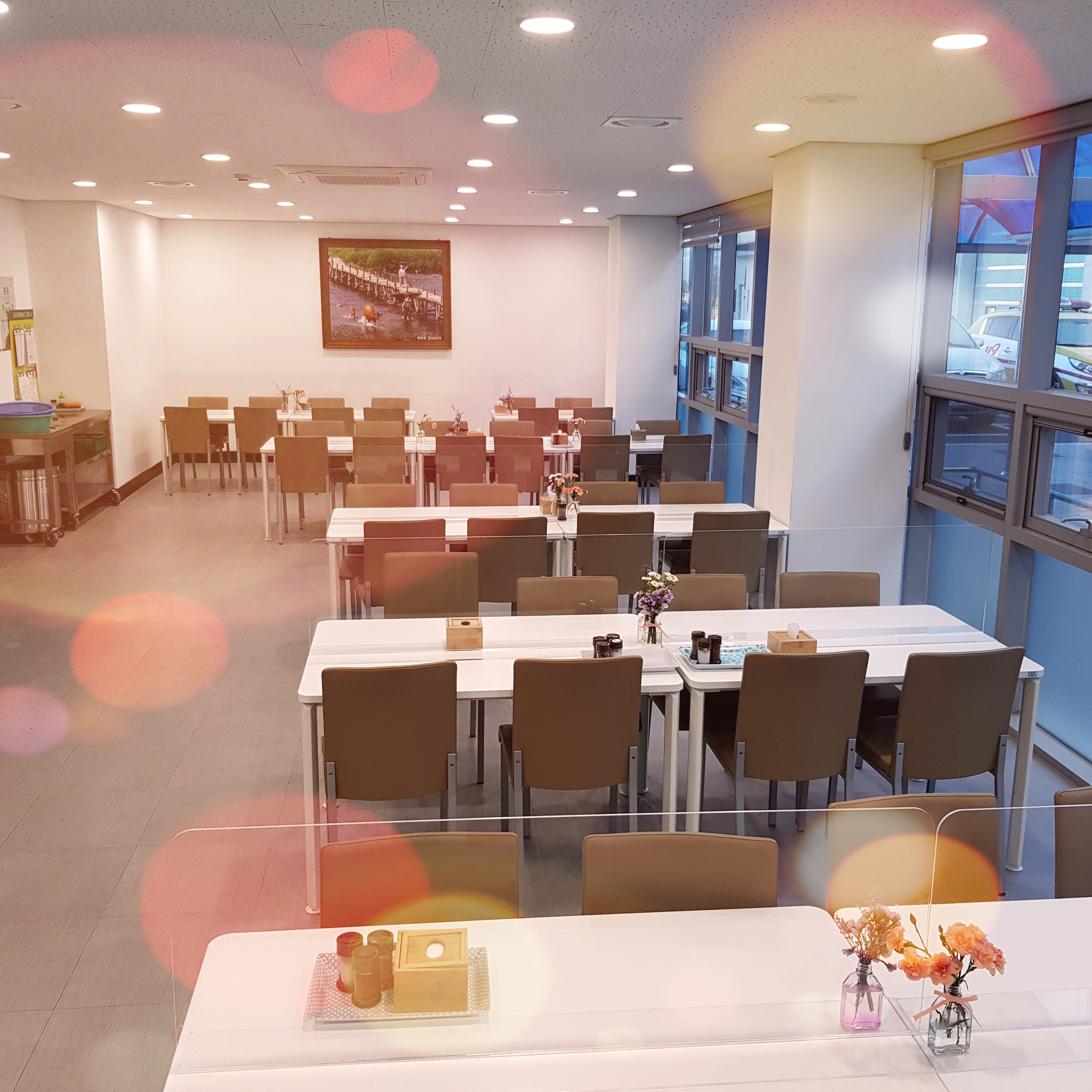 직원들의 복지공간인 식당에는 붉은 장미와 앙증맞은 꽃들이 우리 눈과 마음을 즐겁게 해줍니다.