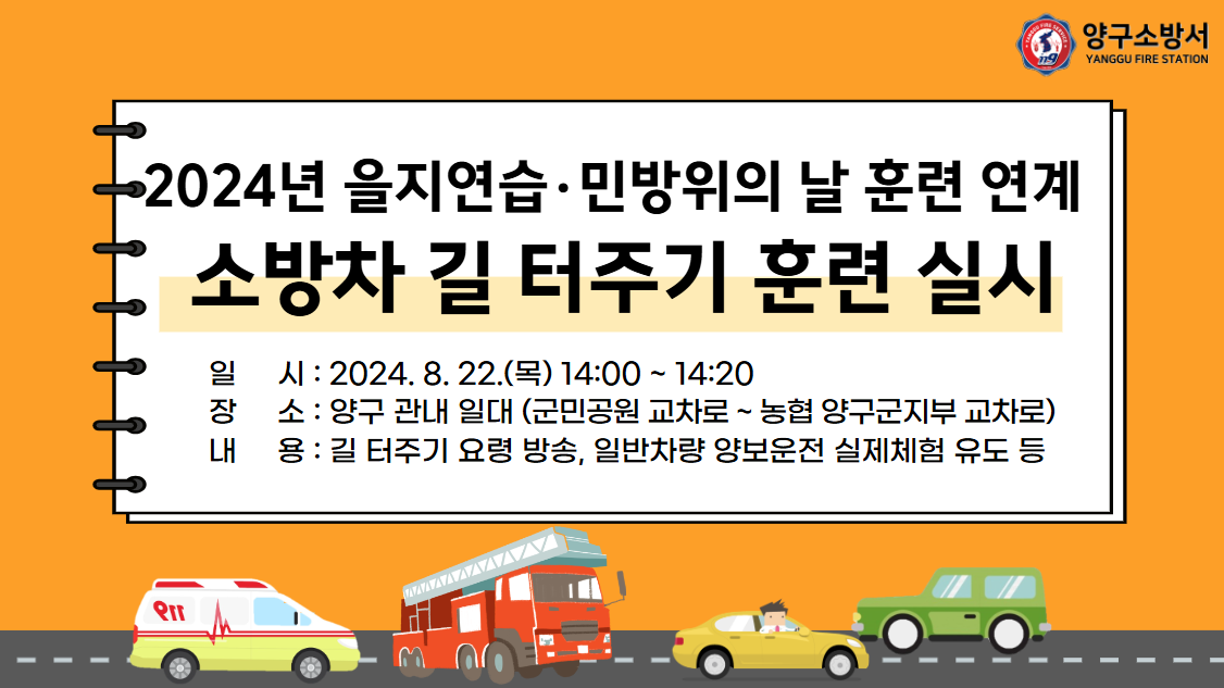 | 224 | 전국 소방차 길 터주기 훈련 계획 | 양구홍보 | 2024-07-30 | 348 | |