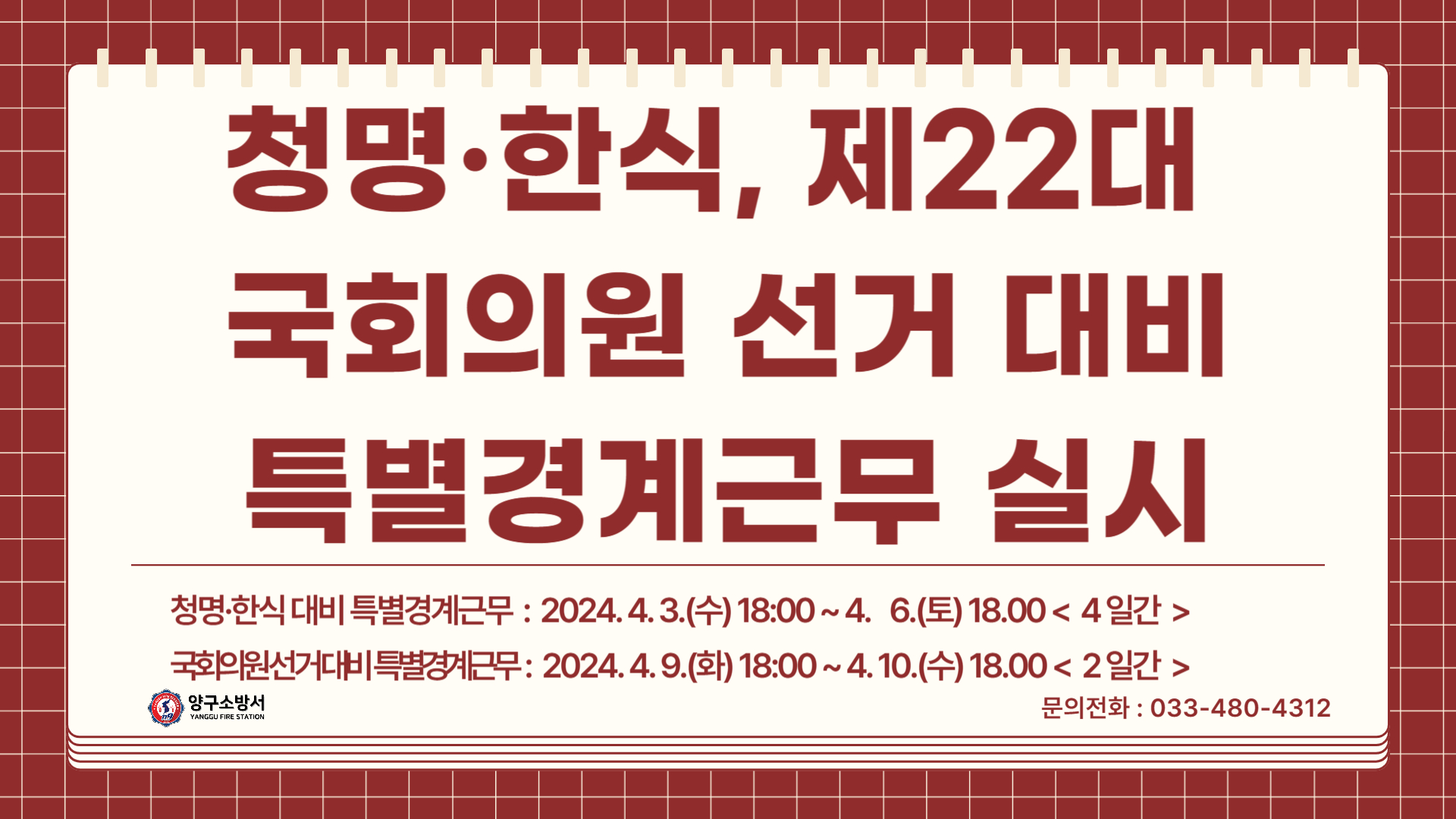 청명한식 및 국회의원선거 특별경계근무 계획