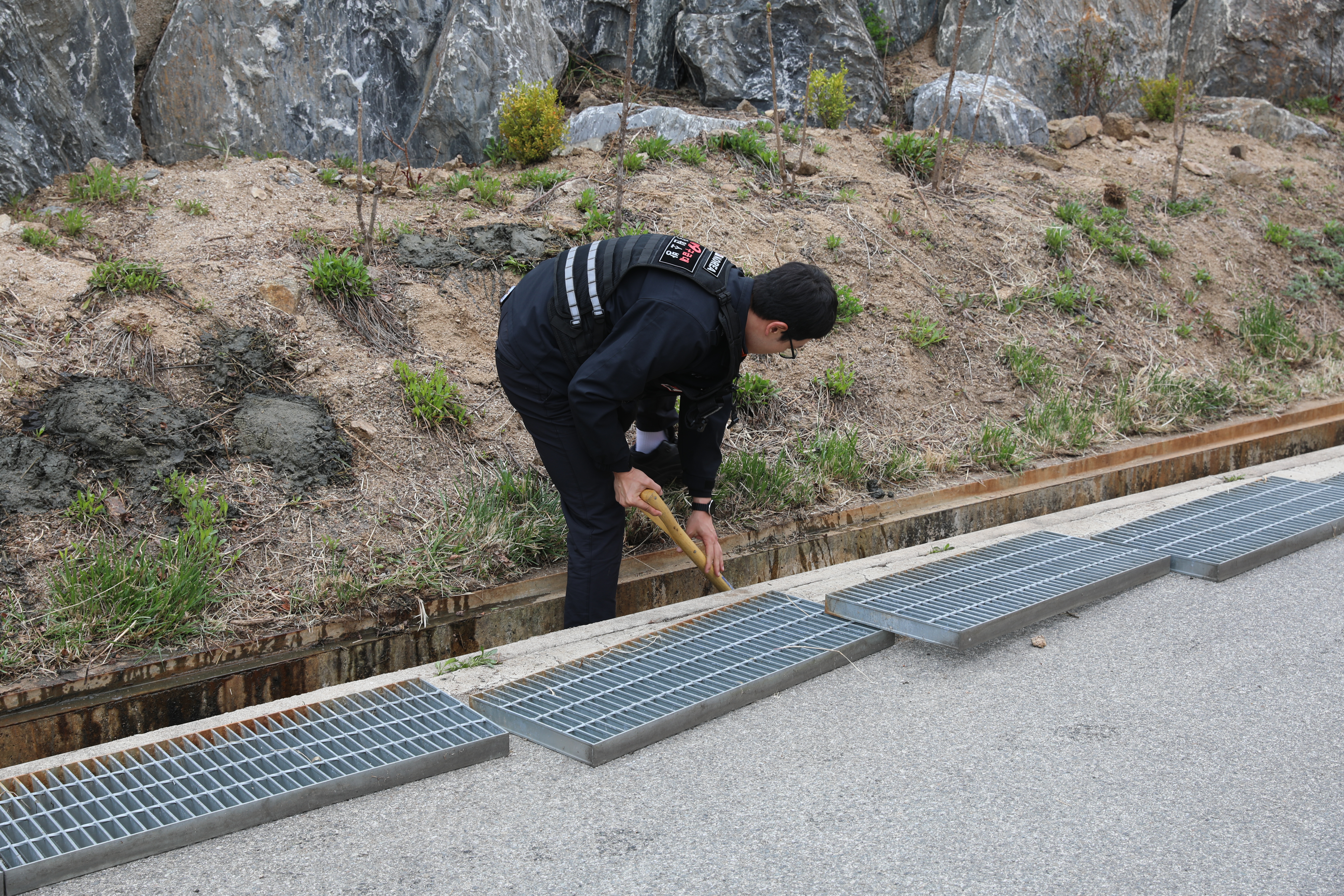 양구소방서, 청사 배수로 내 퇴적물 정리 완료(3팀)