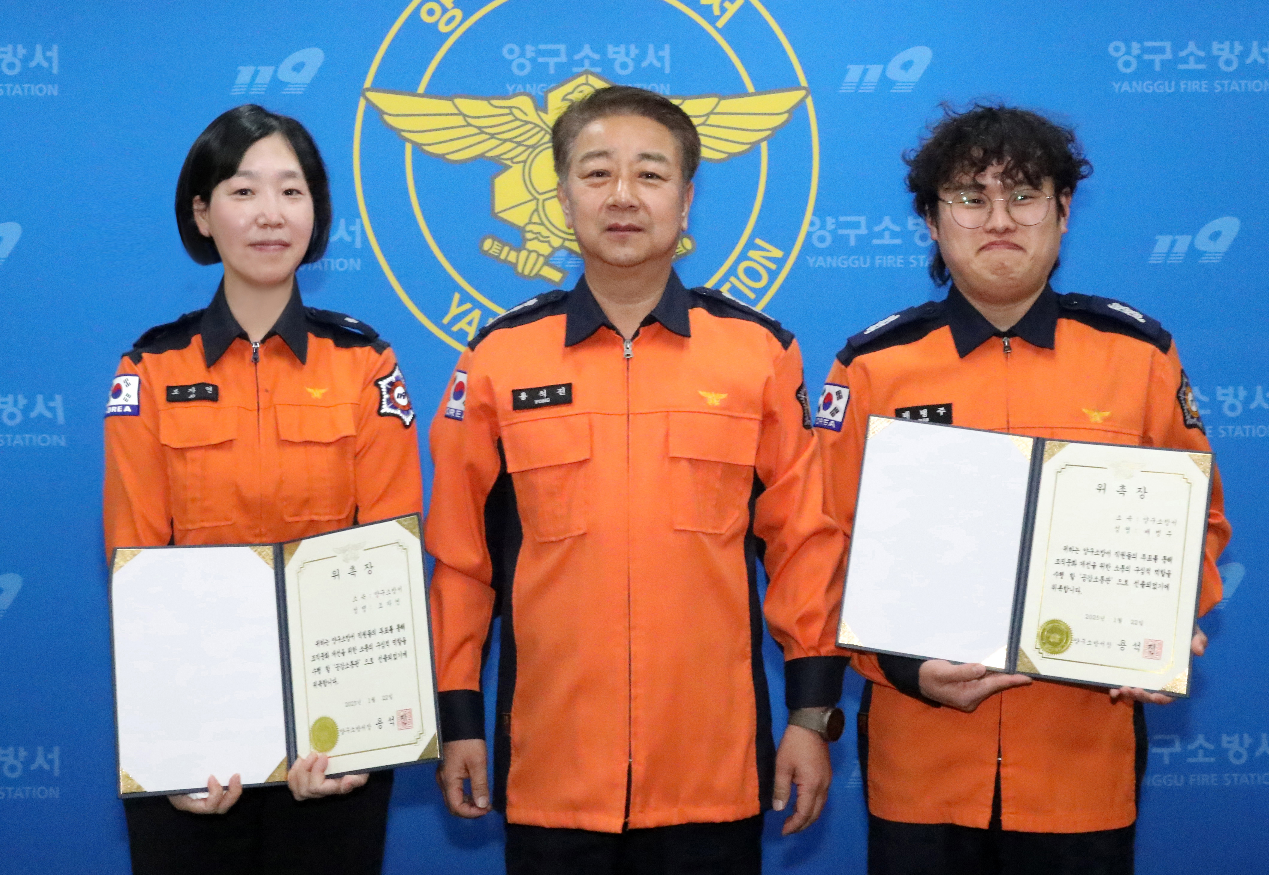 소방위 조자연은 풍부한 경험과 리더십으로 직원들의 목소리를 경청하며 소통 활성화 앞장서며. 소방교 배병주는 현장 업무에 대한 이해도가 높아 조직 내 신뢰와 협력 문화를 조성하는 데 기여할 것으로 보인다.