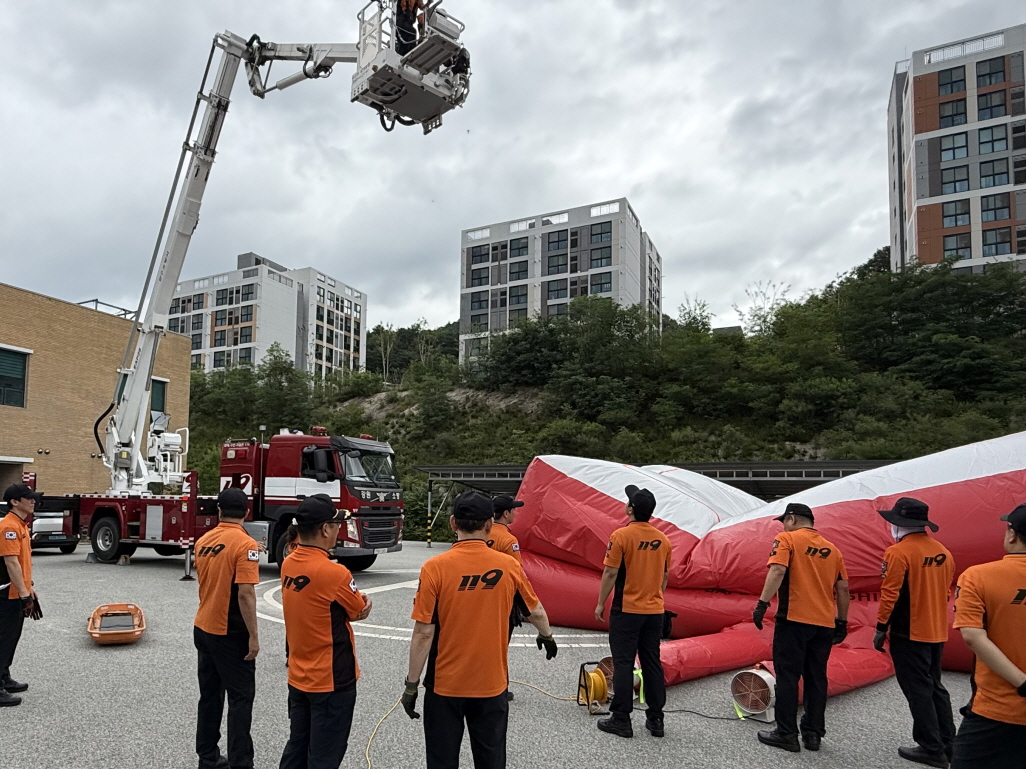 양구소방서, 고층아파트 피난 대비 공기안전매트 훈련 실시!