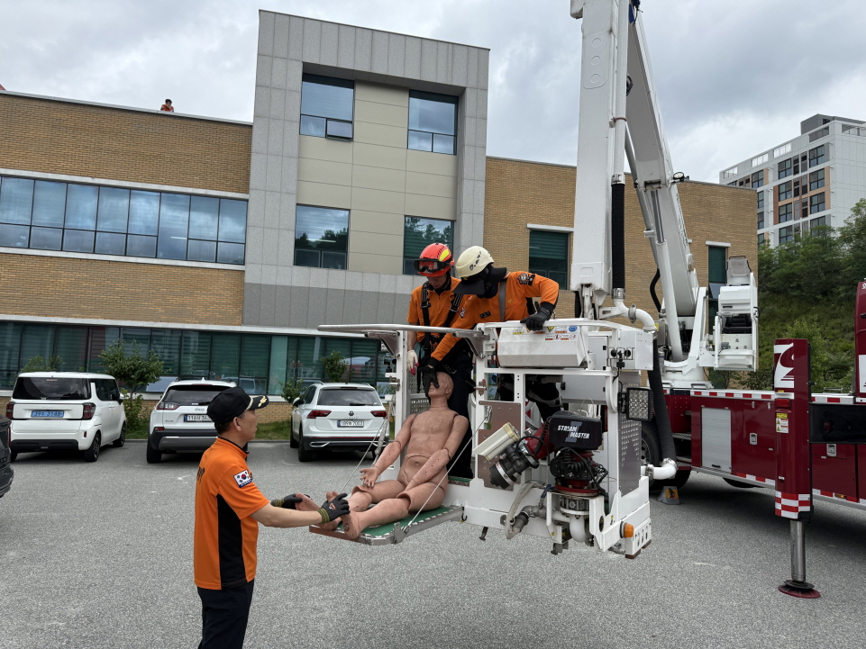 양구소방서는 7월 22일, 고층 아파트 화재 시 신속한 인명구조를 위한