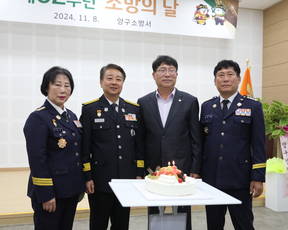 ◇양구소방서(서장:용석진)는 8일 소방서 대회의실에서 용석진 서장과 서흥원 양구군수, 정창수 군의장 등이 참석한 가운데 ‘제62주년 소방의 날’ 기념 자체 행사와 유공자 표창 수여식을 개최했다. 용석진 서장은 “지역사회의 안전을 위해 봉사와 헌신의 모습을 보여준 여러분의 노고에 감사를 전한다”며 “앞으로도 안전한 양구군을 만들기 위해 최선을 다하겠다”고 전했다. 양구=윤종현기자