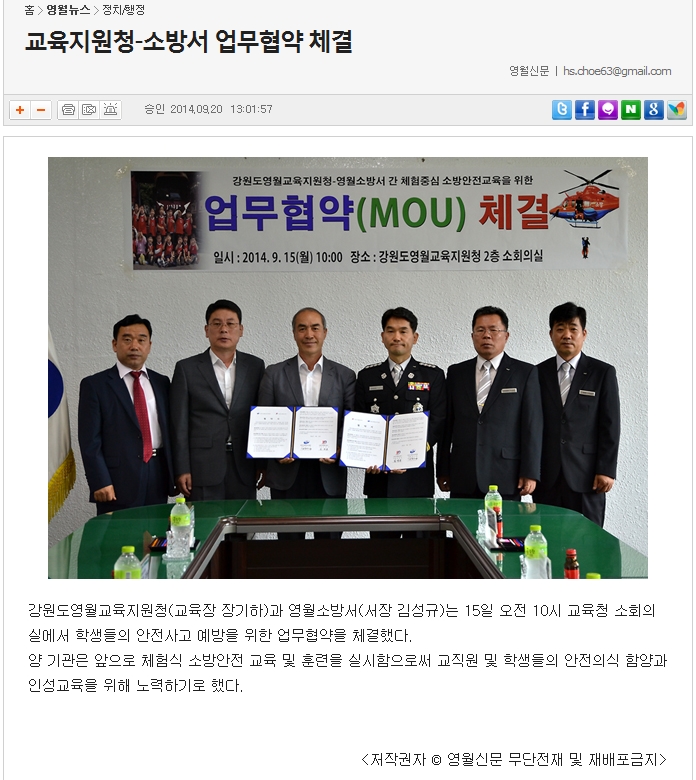 2014-9-22[영월신문]-교육지원청과_영월소방서_업무협약.jpg