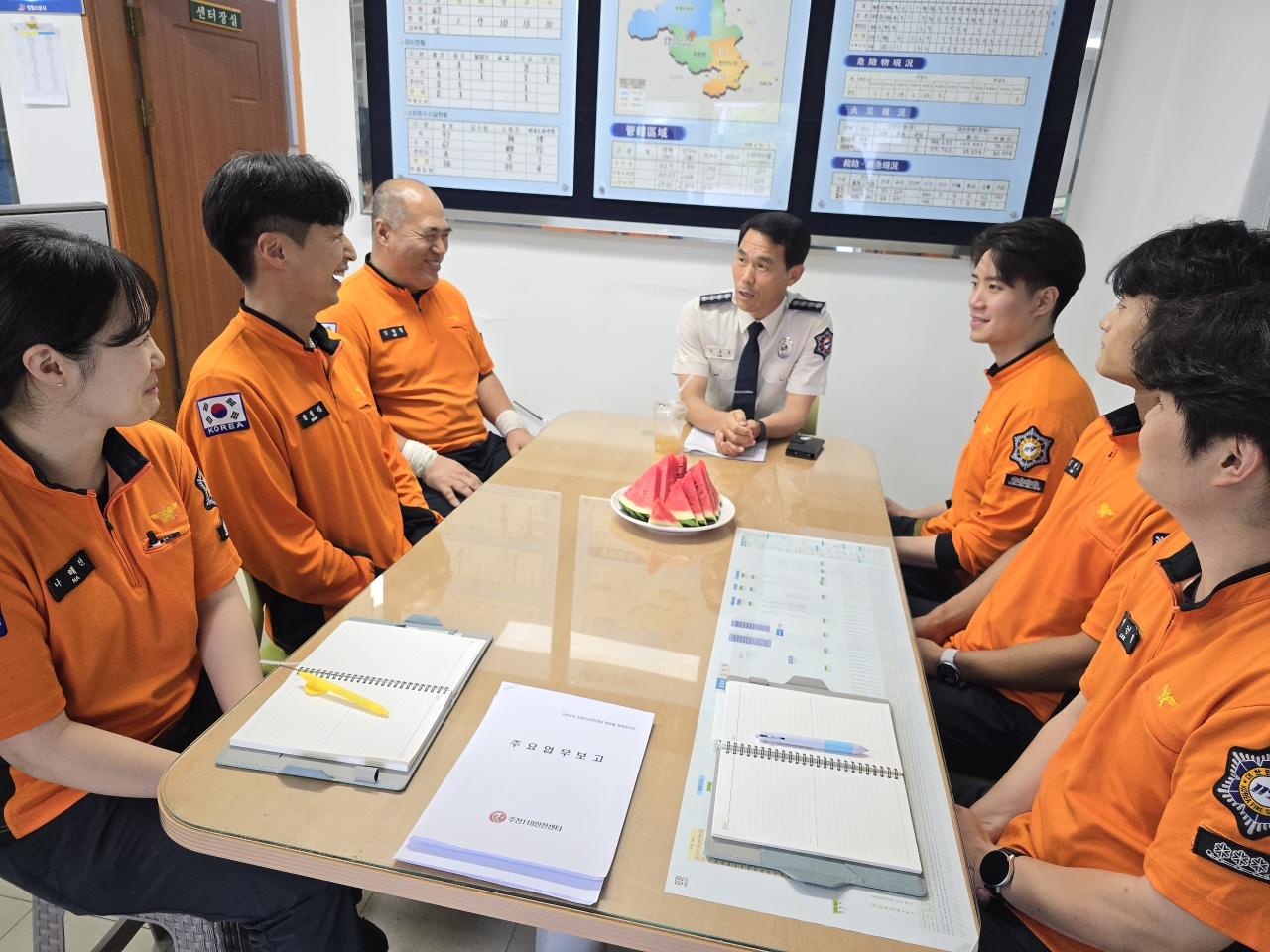 순시 첫 날인 23일 김 서장은 재난 현장에서 힘쓰고 있는 직원들을 격려하고 자연스러운 대화를 통해 근무 관련 어려운 점에 귀 기울이는 등 소통의 시간을 가졌다.