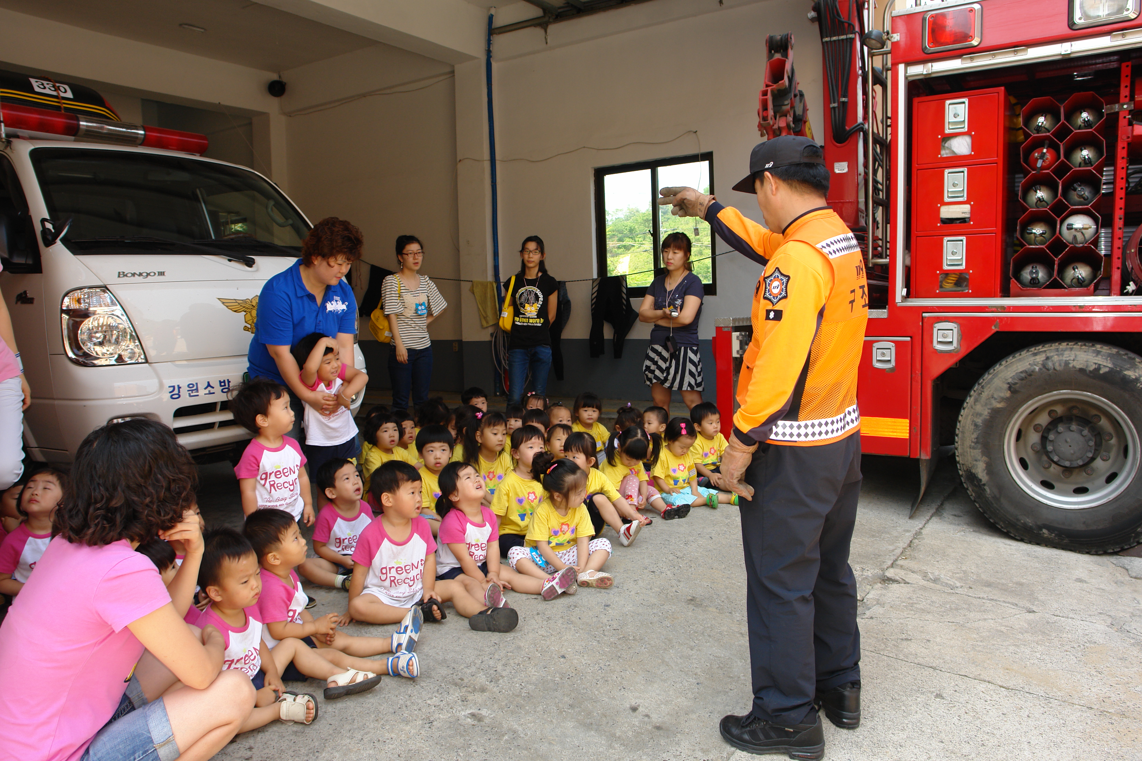 일찍부터 안전의식을 길러주고자 체험 및 소방장비 견학 등의 시간을 가졌습니다. 이다음에 건강한 소방관이 되기를 기대해 봅니다.