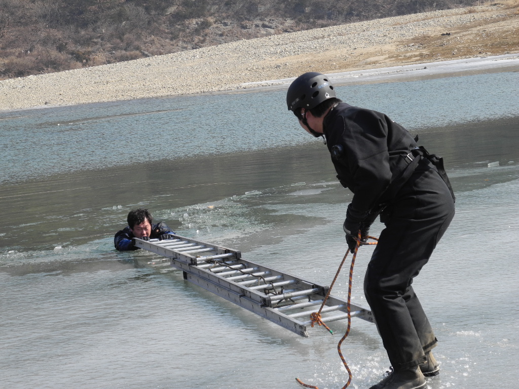 영월소방서(서장 김남백) 119구조대에서는 2012. 2. 20.(월) 해빙기 수난사고에 대비하여 호버크래프트를 이용한 인명구조방법, 사다리를 이용한 구조방법 등 해빙기 수난사고대비훈련을 실시하였습니다. 우리 119구조대는 항상 훈련을 통해 만반의 준비태세를 갖추도록 하겠습니다.