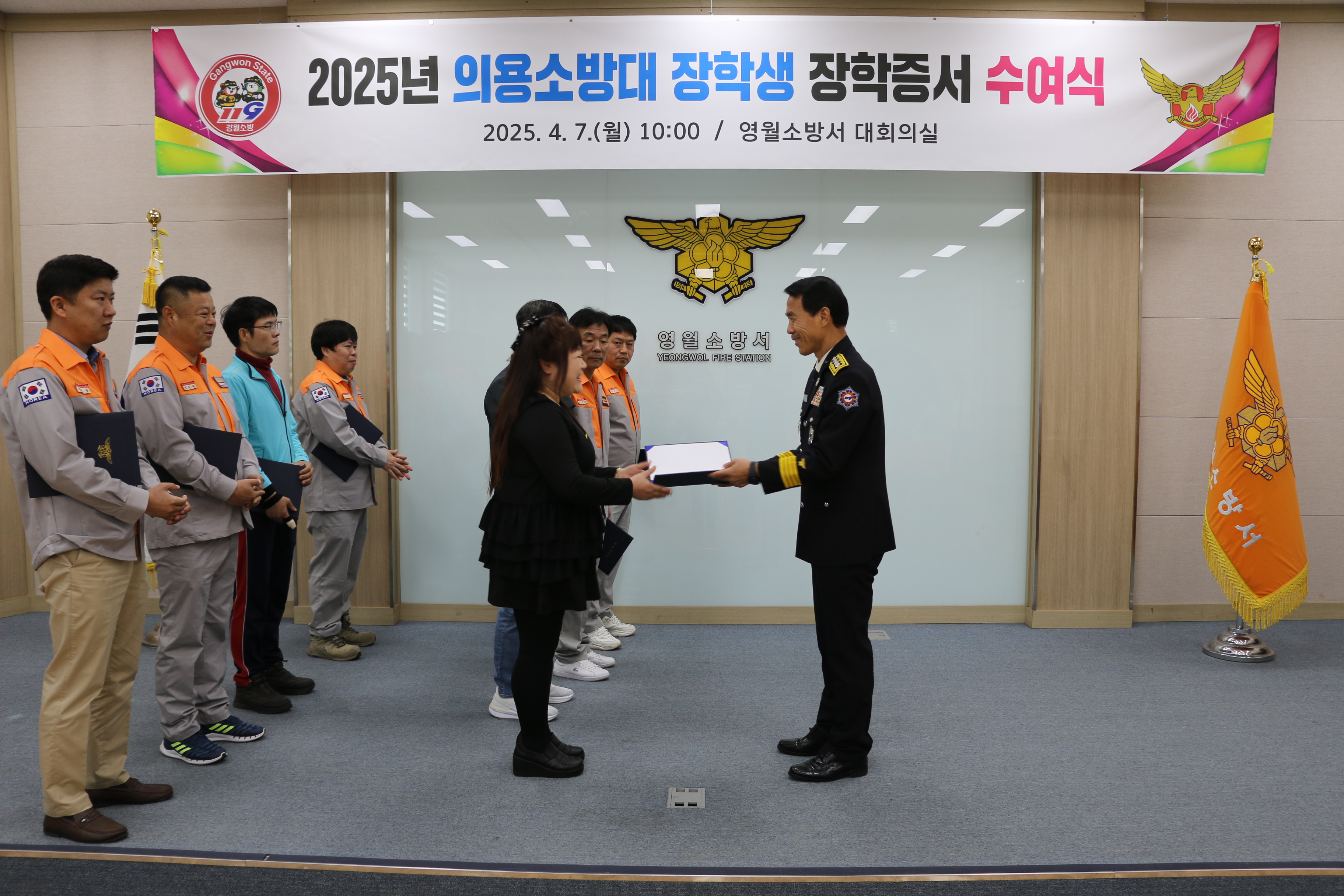 | 1274 | 의용소방대 장학생 장학증서 수여식 (25년 4월 7일) | 영월 | 2025-04-07 | 300 | |