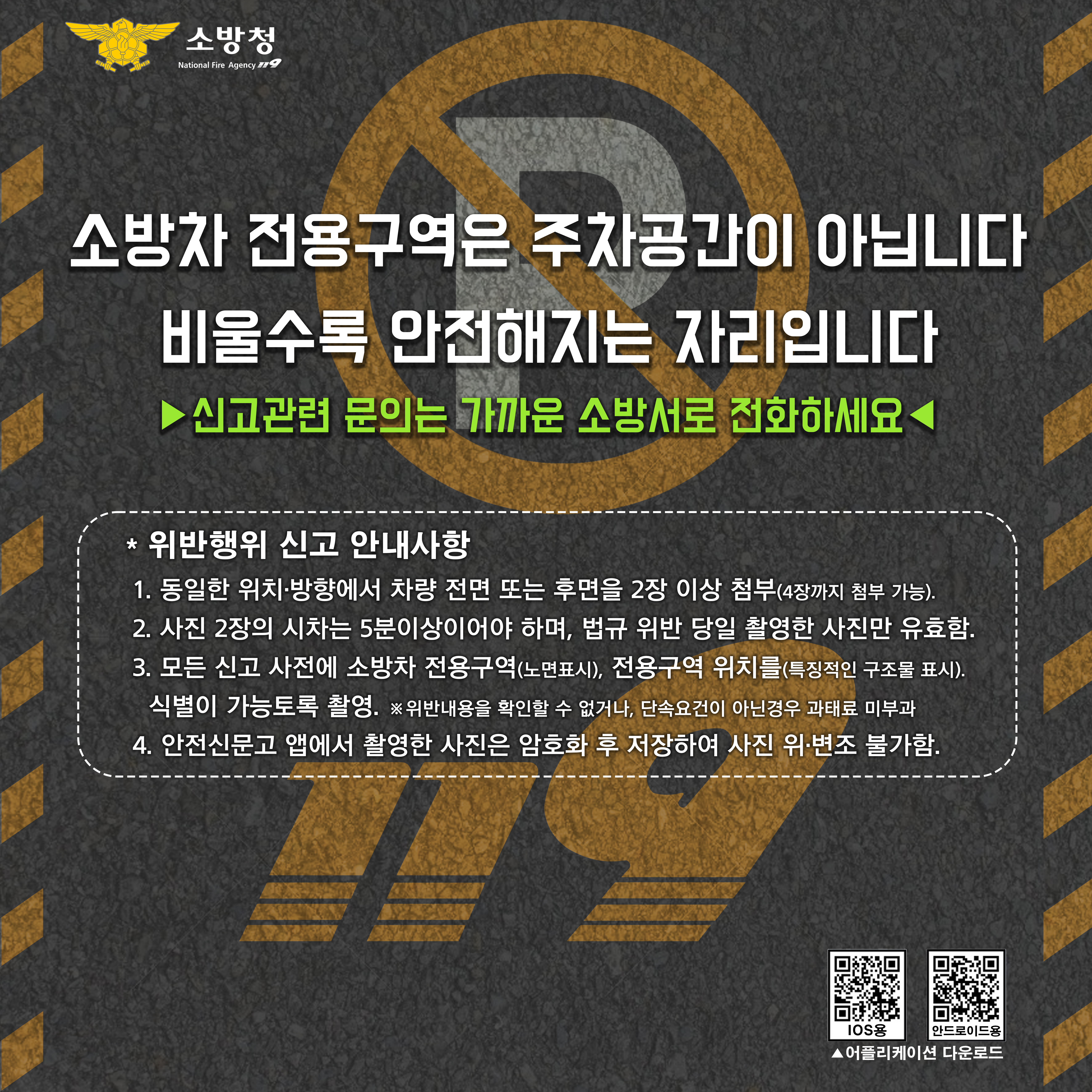 소방차 전용구역위반 신고 안전신문고로 신고하세요!