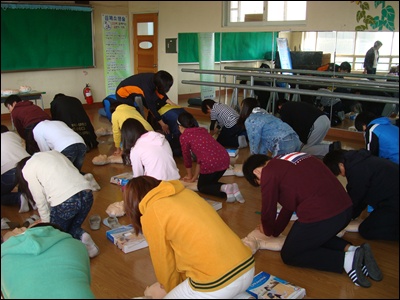 영월초등학교는 심폐소생술 체험중!!!