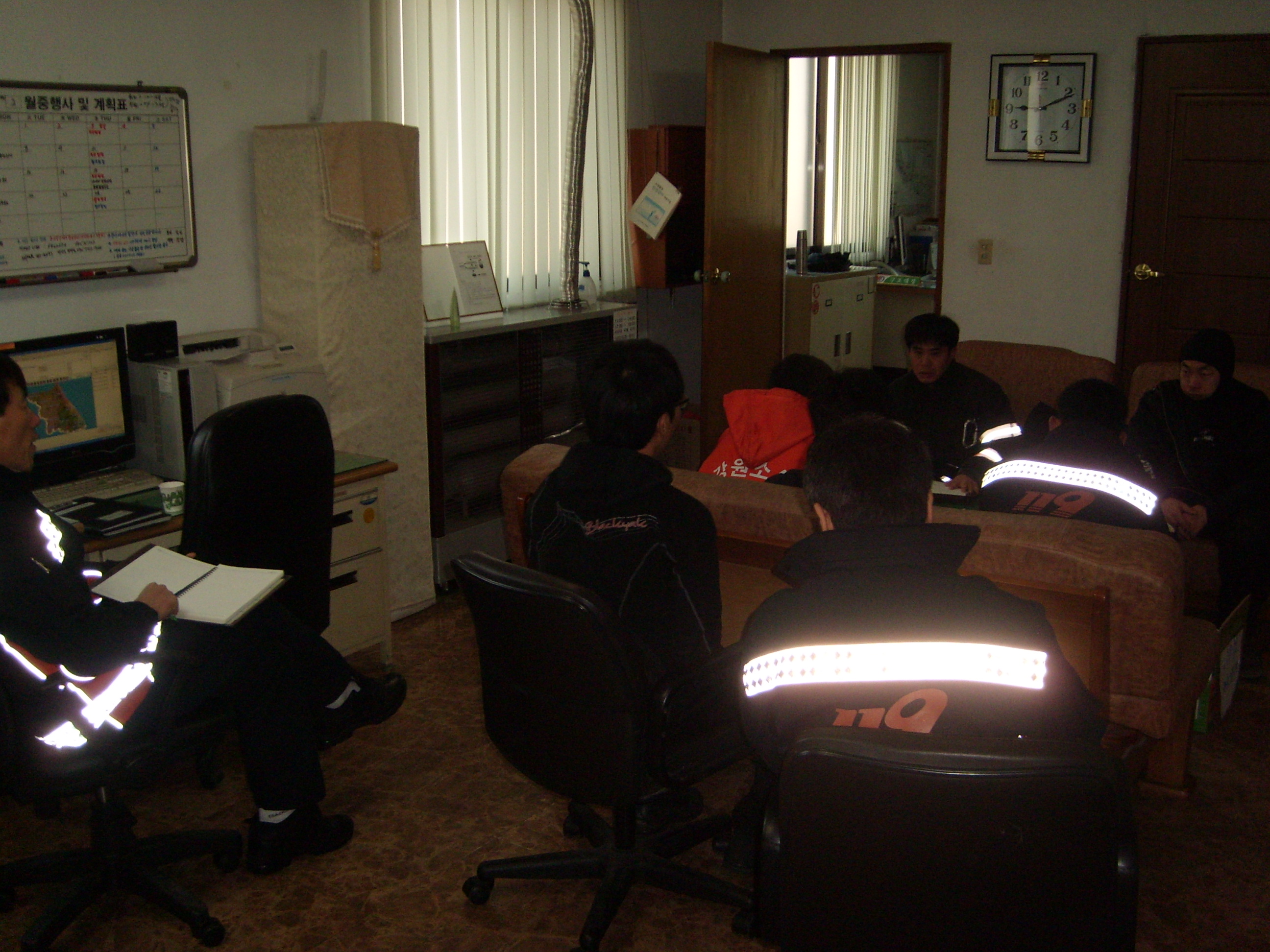 영월소방서(서장 김남백) 119구조대는 2011.11.14.(월) 아침직원조회 및 현장활동 시 안전 확보에 관하여 안전관리교육을 119구조대사무실에서 실시하였습니다.