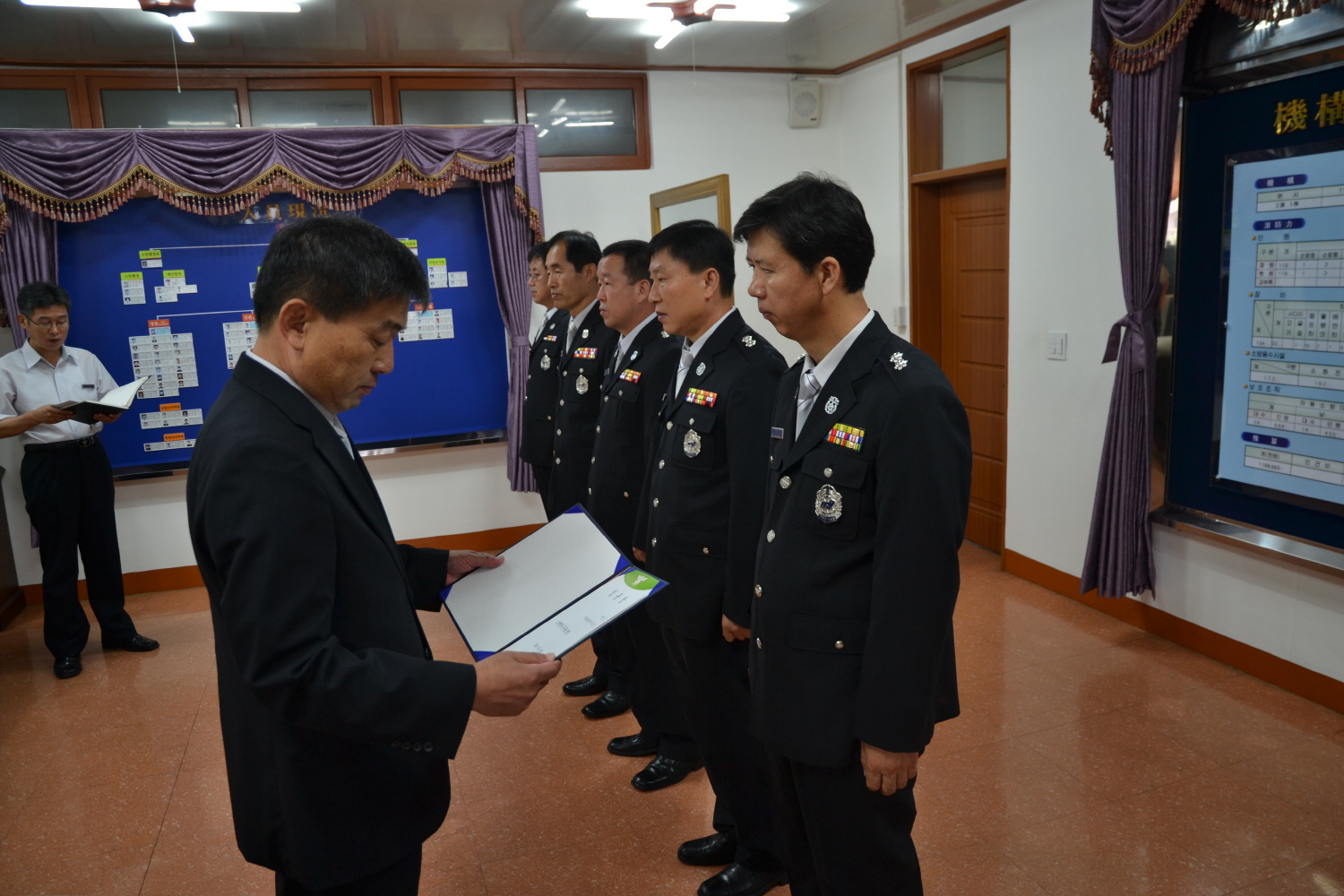 영월소방서(서장 김남백)는 2012. 7. 23(월) 09:00분 인사발령자에 대한 신고식이 있었습니다.