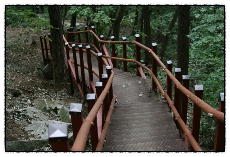 원주시 귀래면에 위치한 "미륵산"에 올랐다. 얼마전 헬기로 등산로정비를 위해 운반해 놓은 계단자재가 이번에는 완전히 암릉구간에 깔끔하게 설치가 완료되어 있다.