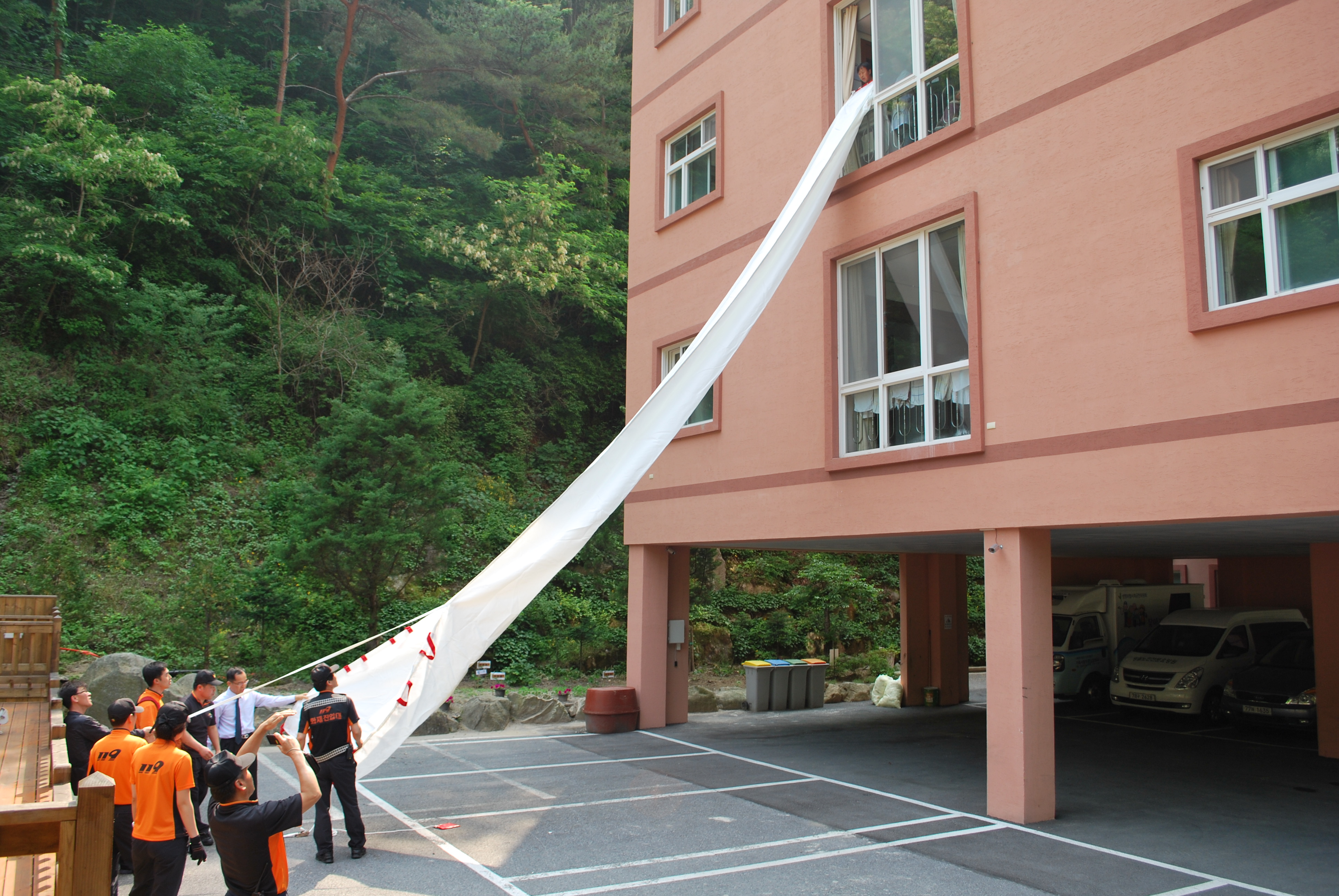 어르신들이 소방차와 구급차가 오시는것을 보시고 다소 놀라셨지만 안내 방송과 소방대원님들의 친절한 설명으로 어르신들께서 당황하지 않고 소방훈련을 잘 진행 했던것 같습니다.