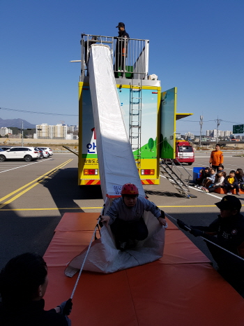 이날 체험은 ▲재난 체험 ▲경사구조대 탈출 체험 ▲펌프차 탑승ㆍ장비체험 순으로 다채롭게 진행됐다.