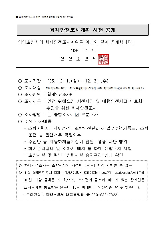 12월 화재안전조사 계획 알림