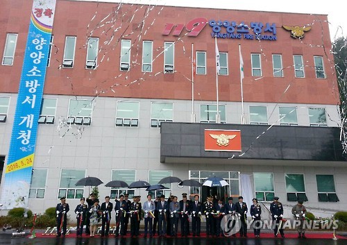 (양양=연합뉴스) 이종건 기자 = 강원도 양양소방서가 준공돼 24일 양양읍 월리 현지에서 개서식을 했다.